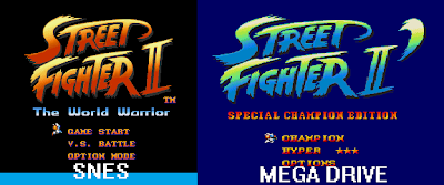 Comparação muito injusta! Vc pegou o Street Fighter II The World Warrior do SNES, q foi o PRIMEIRO Street Fighter II pra comparar com o Street Fighter II Champions Edition do Mega Drive, q foi o SEGUNDO jogo do Street Fighter II!